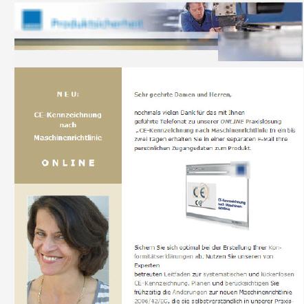 Informationsergänzungen durch grafische Mails führen zu einer elementar höheren Haltbarkeit von Informationen, die dem Ansprechpartner zuvor telefonisch (klassisch oder via IP) kommuniziert wurden. Anwendung finden die HTML-E-Mails bei allen erklärungsbedürftigen, komplexen oder emotionalen Produkten. Aufgrund des Formats lassen sich bestehende Web-Inhalte häufig sehr gut übertragen, so dass der Kunde Ihren Auftritt als einheitlich ohne Designbruch wahrnimmt. Das Produkt selber, Produktdetails, Anwendungsmöglichkeiten, Zusatznutzen und Hinweise auf zusätzliche Leistungen aus Ihrem Portefeuille lassen sich hervorragend integrieren.
